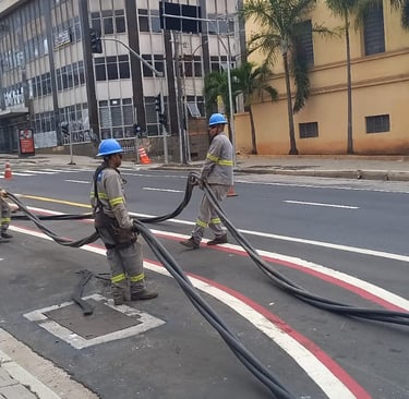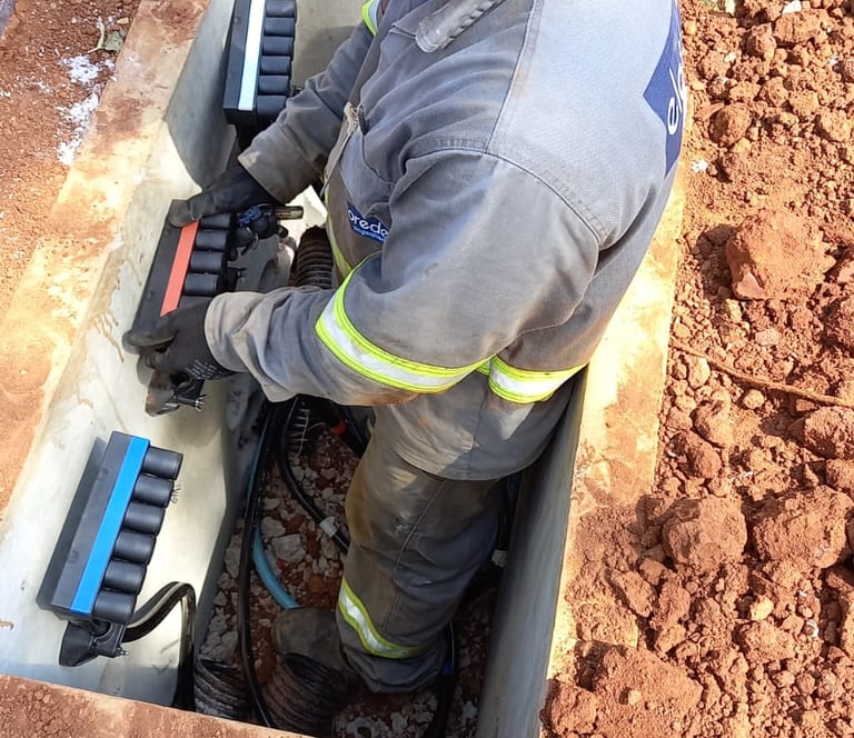 Lançamento de cabos de baixa tensão (BT), totalizando 3 km, garantindo a distribuição de energia para os usuários finais.