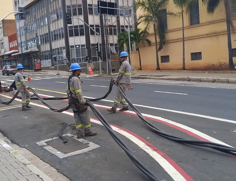 Lançamento de cabos de 400 mm² para a rede de 13.8 kV, totalizando 1 km.