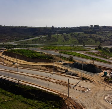 Avaliação inicial do local e levantamento topográfico para determinar as posições dos 199 postes de concreto.