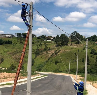 Lançamento de 1,7 km de cabos de baixa tensão (BT) trifásicos com neutro (3F+N) para complementar a infraestrutura elétrica.