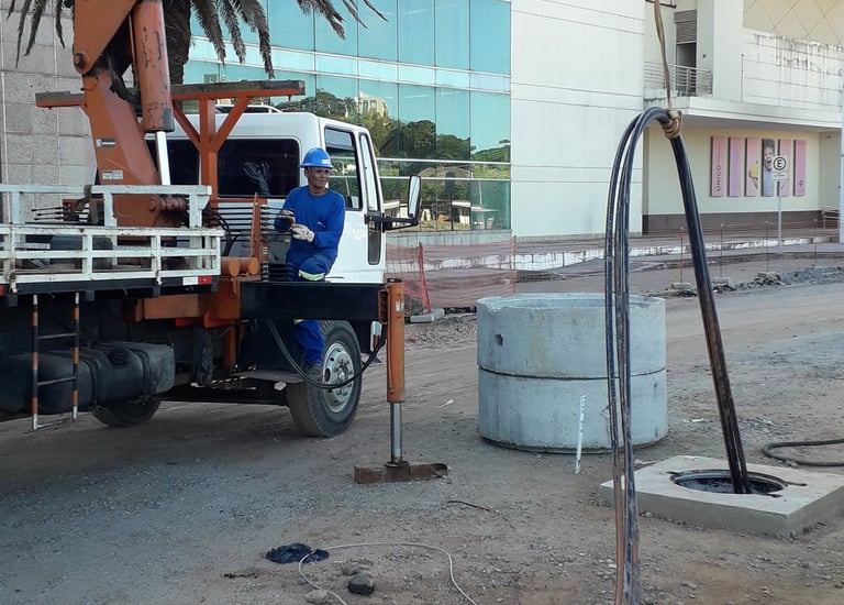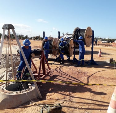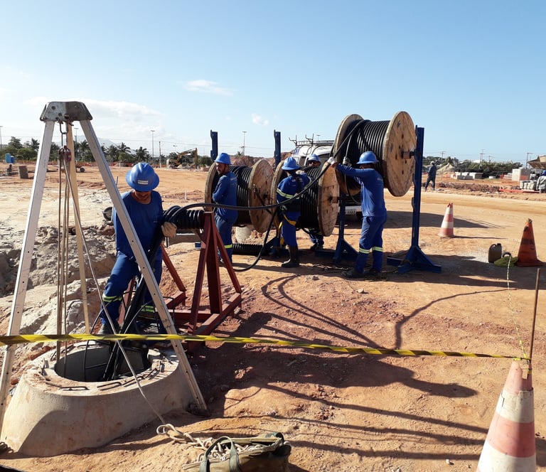1,2 km de Cabos de 240 mm² para Rede de 13.8 kV: Lançamento dos cabos de média tensão.